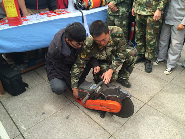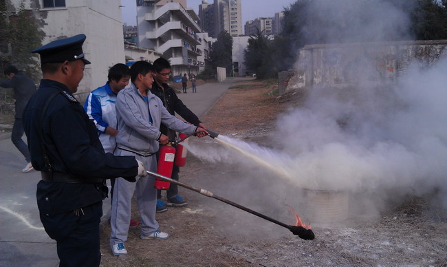 活动现场,两辆载有先进装备的消防车向师生员工展示了消防实战的训练成果。消防官兵现场示范最新消防装备器材的使用方法,参与活动的师生员工在消防官兵的指导下,还亲手尝试部分消防器材。参加活动的师生员工还在印有“找火灾隐患,保家庭平安”内容的横幅上签名,最后活动在灭火区域进行灭火实战演练中结束。