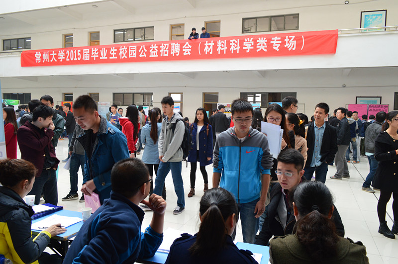 11月22日上午,由常州大学就业指导中心、材料科学与工程学院联合举办的“常州大学2015届毕业生材料科学类专场招聘会”在教学辅楼大厅顺利举行。材料学院2015届本科、硕士毕业生参加了此次招聘会。学生处及学院负责人现场指导并与用人单位和毕业生交流。就业指导中心老师和学院辅导员、部分专业教师也到场向用人单位推荐毕业生。