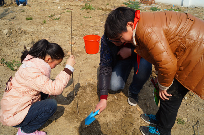 阳春三月,春意盎然。3月12日,在第37个植树节来临之际,为身体力行对抗雾霾天气,从而为常州绿化做出自己的一份贡献,艺术学院园林专业和武进鸣凰中心小学共建的“苍穹之下,绿树成荫;大手牵小手,青春永不朽”的植树节活动在鸣凰中心小学校园内展开。