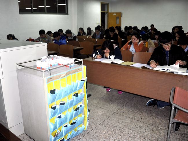 本学期初,学院在2014级学生中开展“我的课堂无手机”倡议活动,各班级通过班会广泛动员,利用QQ群、微信、微博等互动平台进行宣传,让同学们了解此次活动的目的和意义。各班级值班班委将“手机休息室”挂在教室规定的位置,并负责看管,将课堂玩手机的不文明行为清出课堂。