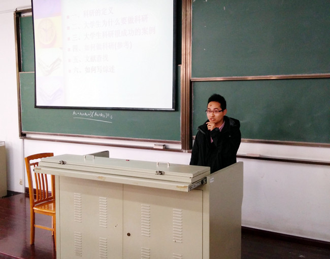 王老师以“科研,离我们远吗?” 为主题,用自己的科研经历及所学知识与同学们作分享,让同学们尽快地了解与熟悉科研写作。王老师给同学们讲解了什么是科研?为什么要做科研?最后着重讲了如何做科研?从文献查找、综述撰写等方面为同学们介绍做科研的基本方法与注意事项,并以一些大学生科研的成功案例来激发同学们的科研兴趣。