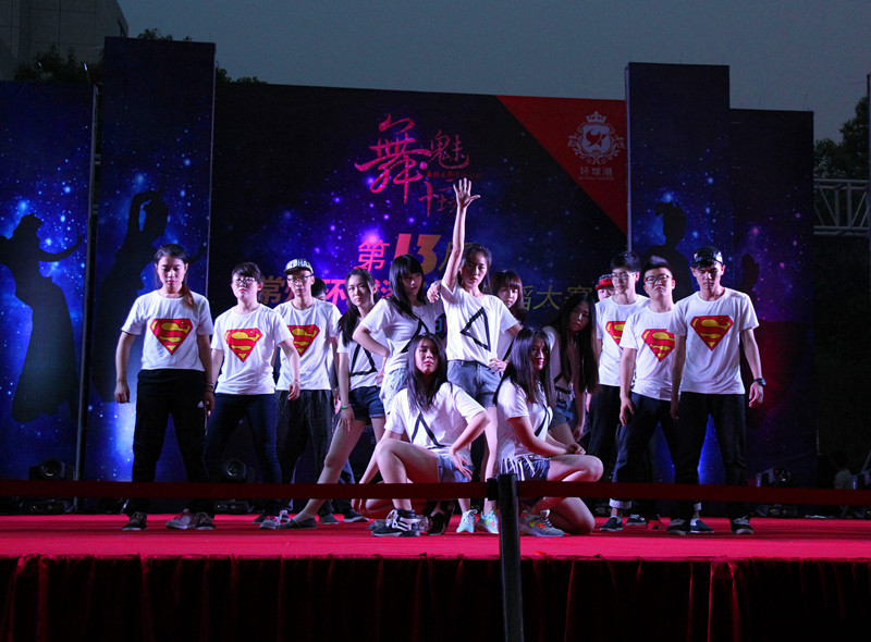首先带来精彩表演的是街舞联盟,他们的舞蹈《EXPLOSIVE NIGHT》果然舞如其名,将这个夜晚彻底点亮,强劲而帅气的动作,青春的气息扑面而来。接着是此次比赛的东道主——石油化工学院食品学院带来的《呼唤绿荫》,清新自然的舞蹈旋律,整齐划一的舞蹈动作,让我们领略到了自然的美好与静谧。材料学院同学们带来的《东方魅》,充满灵气的肚皮舞别出心裁。周有光语言文化学院的《傣家女儿情》极富民族特色。环境与安全工程学院带来的《DANCING COCAINE》使全场的气氛更加热烈,强烈的节奏,酷炫的动作让人印象深刻。史良法学院的《The RISE OF THE QUEEN》也十分深入人心。商学院的《玉生烟》姿态柔美,楚楚动人。艺术学院带来的《CANDY》独具匠心的编排创意引得台下喝彩不断,花火健美操的《MR.DOLL》动作轻盈流畅,常州纺织学院带来的爵士舞《KOD》,她们虔诚而又热血的姿态诠释了舞蹈的深刻魅力。最后一支队伍DS为我们带来了《炸》,强烈的视觉感受轰炸了台下观众及评委的眼球。整场比赛掌声喝彩声连连不断,美轮美奂的舞蹈让所有人大饱眼福流连忘返。在比赛进入到尾声的时候,天公不作美,狂风大作,下起了大雨,但比赛仍顺利结束。大家克服困难,努力将晚会漂亮得收场。节目的最后,校舞蹈团表演《花腰花》时,豆大的雨点密集落下。为了安全,工作人员迅速切断所有电源,音响灯光设备全部关闭,但是我们可敬的姑娘们自己喊着口号打着拍子跳完了整支舞。现场依依不舍的观点为她尖叫呐喊。