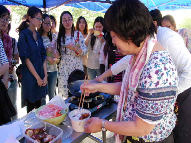 开幕式上,青春活力的体操舞蹈,节奏动感的街舞表演,创意十足的四国歌曲串烧,引爆了现场观众的热情;日语系的阿波舞和西班牙语系的斗牛舞表演,更是以浓郁的异域风情将现场气氛推向高潮。之后的美食节上,各个专业都推出了各自的风味小吃和特色美食,外教和留学生也积极参与其中,本次美食节品种丰富,不仅有中国的传统美食,还有日本天妇罗、咖喱饭、西班牙土豆饼、特制沙拉、西式花茶等异域食物;美食节吸引了众多的同学参与其中,活动一直持续到下午六点结束。