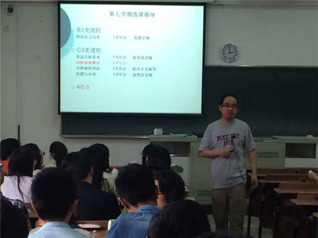 化工专业马江权老师,应化专业曹剑瑜老师、食品专业陶永新老师、能化专业崔文龙老师等通过分析各年级课程设置和学生所处学习阶段,针对学生在学习中遇到的困难,结合专业发展前景、专业能力提升及课程选择方式方法等给学生做了详细的分析和介绍。选课指导的开展为学生进一步完善和改进自己的学习安排,做好自己的学业规划提供了很好的指导和借鉴。