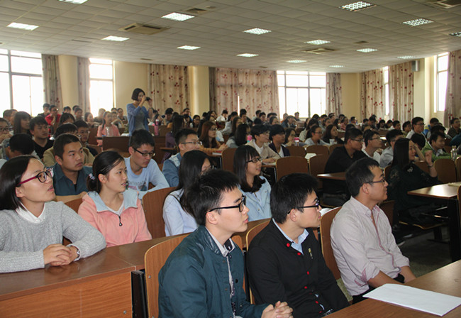 在课上,梅婷女士以名言“stay hungry, stay foolish”为引,与学生们分享了自己心目中合格员工的品质:感恩、热情、学习、意志力、责任心。引导学生要会让自己增值而非简单的增加。同时引用大量案例告诉同学们对于内心没有方向的人,去哪里都是逃避,而对于生命有方向的人,走向哪里都是追寻。随后,梅婷女士从专业角度提醒同学们制作简历及面试时的注意点。在最后的问答环节,同学们与江海环保有限公司一行互动十分热烈。