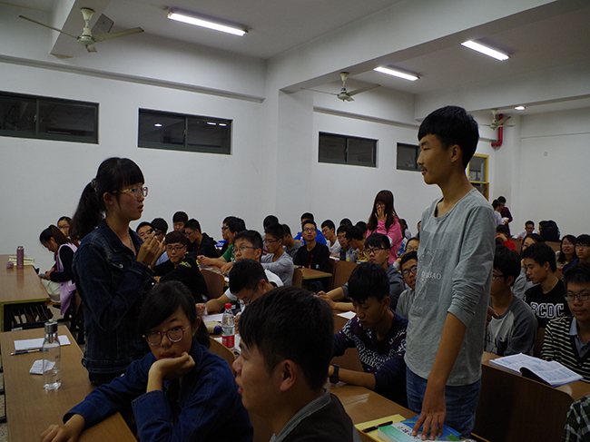 交流会中,学院优秀学生代表用PPT向新生展示英语四、六级的学习方法及专业课知识的注意要点,并结合自己的经验,与新生分享了如何度过自己的大学生活。互动环节,新生就学习、工作、就业及专业的未来发展方向等提出问题,学长们都积极地为新生解答着每一个问题。