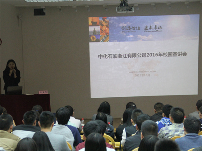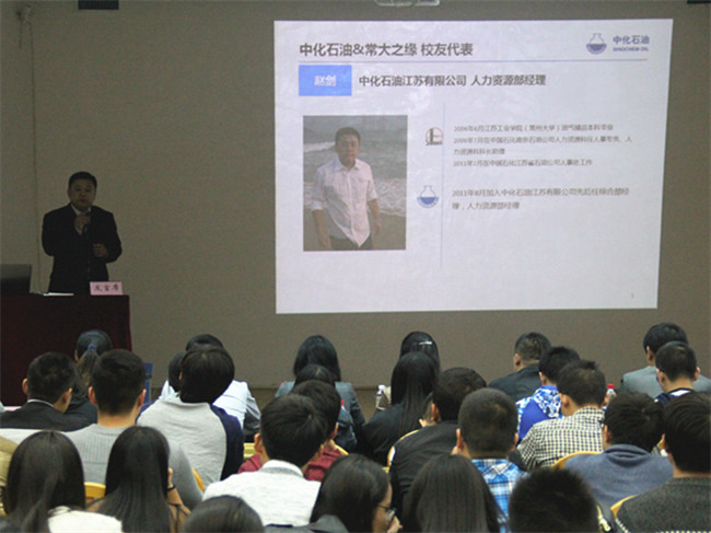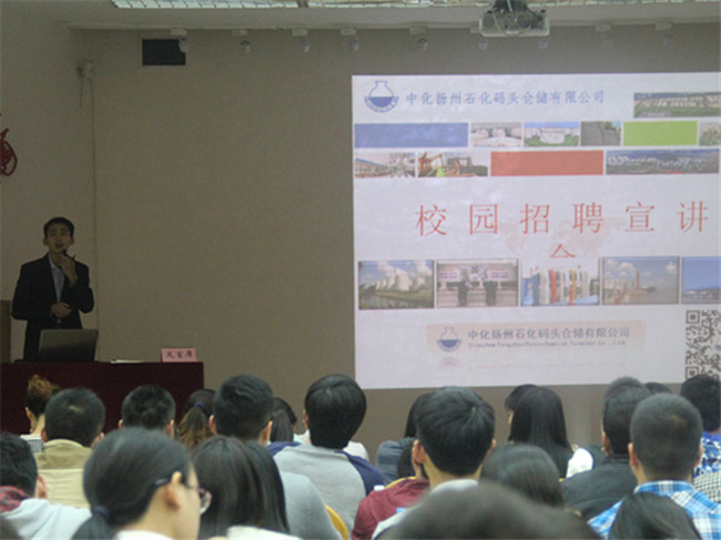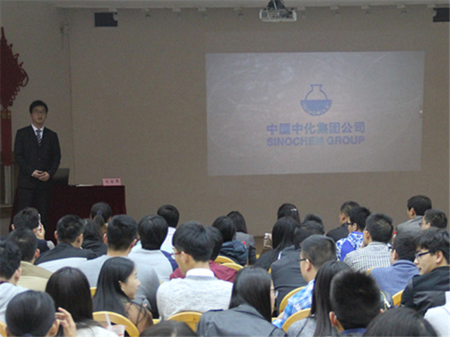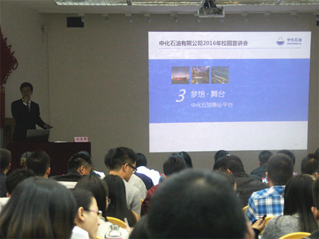 为拓宽毕业生就业渠道,切实加强与中化集团公司的交流沟通,近日,应石油工程学院邀请,中国中化集团公司旗下八家单位高该院招聘2016届毕业生。此次招聘宣讲会在图书馆报告厅举行,参加此次招聘会的有中化上海石油公司、中化上海东方仓储公司、中化石油浙江有限公司、中化石油安徽有限公司、中化江苏石油公司、中化南通公司、中化扬州石化公司、中化道达尔油品有限公司等八家单位,院党委副书记陈粲、研究生辅导员许丹丹、2012级辅导员王华及全体毕业生参加招聘宣讲会。