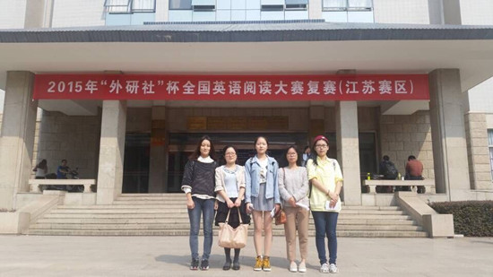 2015年10月17日下午,2015年“外研社杯”大学生英语阅读大赛江苏赛区复赛在南京农业大学举办,我校周有光语言文化学院的王静雯、陈肖敏同学以及华罗庚学院的周颖同学在比赛中表现出色,陈肖敏同学获复赛二等奖,王静雯与周颖同学获复赛三等奖。