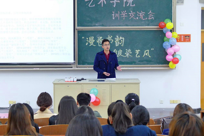 为帮助新生明确奋斗目标与努力方向,提升自我规划意识与执行能力,艺术学院以“漫卷书韵,皴染艺风”为主题,通过一周一学、一周一讲的方式与手段,邀请优秀学长学姐与新生展开面对面交流、互动。近日,一周一学之“训学”在W18阶召开,活动邀请到了校学生会主席冯碧琪、校D8工作室负责人莫开焕、院学生会主席邵帅帅、院就创中心主任曹凡担任主讲人,学院各学生组织负责人及全体学生干事参加交流。