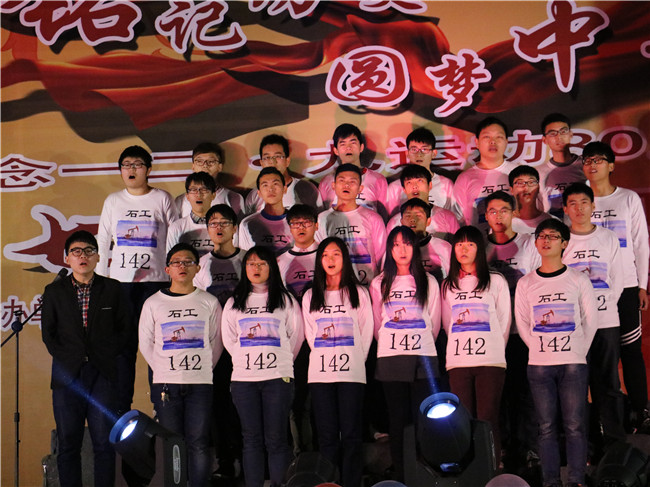 忆往昔峥嵘岁月,抒今朝爱国情怀。值一二·九运动八十周年之际,为弘扬爱国主义精神,增强学生们的责任感、使命感和集体荣誉感,展现当代大学生积极向上、朝气蓬勃、奋发进取的精神风貌,12月4日晚,由石油工程学院团委、学生会、关工委举办的“铭记历史,圆梦中华”纪念一二·九运动80周年暨第七届班级合唱大赛在白云校区大礼堂举行。白云校区管委会副主任张鍠、院关工委肖立川老师、院长王树立、党委副书记陈粲、热能系主任王政伟、建环系主任郭强、学院办公室主任嵇炜应邀出席,钟楼区西林实验学校音乐老师李峰杰老师、怀德学院马磊老师、院学工办宋佳老师、王华老师、院研究生会主席张锦、院研究生党支部书记康甜甜、院团委副书记胡居迎应邀担任合唱大赛评委。该院2014级和2015级班主任老师及各年级辅导员老师出席本次活动。