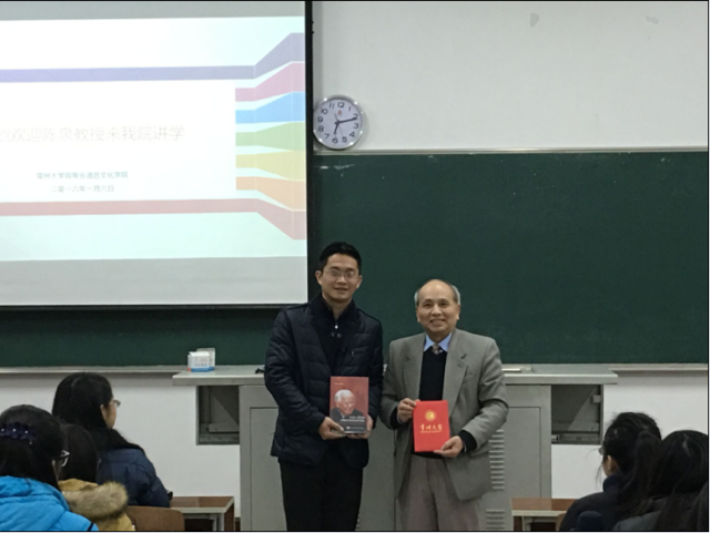 近日,上海杉达学院西班牙语系主任陈泉教授将其精心翻译的西班牙语版《国事忆述》赠给周有光语言文化学院图书资料室。周有光语言文化学院党委副书记龙涌澜代表学院接受了陈泉教授的赠书。该书已编目入藏,供广大读者借阅。