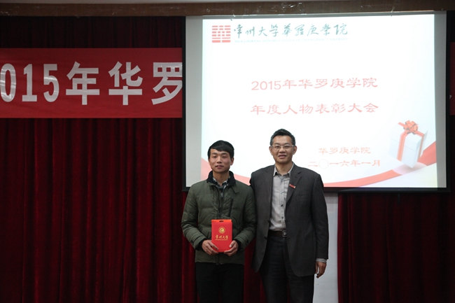本年度人物评选大会,学院本着“身边榜样,前行力量”的主题,对2015年度在学术创新、社会实践、公益服务等不同领域取得突出成就的集体和个人进行评选。华罗庚学院团总支历时一个月,通过微信平台广泛宣传、投票。最后选出华院年度勤学奖、年度创新奖、年度致用奖、年度公仆奖、年度爱心奖、年度活力奖、年度尚美奖、年度金语奖、年度博闻奖、年度协作奖等十项单项奖和“华院年度人物奖”。伴随着华院全体同学自行编排了《华院好声音》、《相亲相爱》、《平凡之路》等文艺节目,华罗庚学院年度人物各单项奖各归其主,颁奖嘉宾宣读颁奖词后,宣布获奖名单并与之合影留念,评选大会也步步推向高潮。最后通过现场微信平台投票,常州大学校长、华院151班主任浦玉忠教授揭晓2015年度人物大奖,来自华院131班吴炳泉同学摘得桂冠,至此华罗庚学院2015年度人物评选大会落下帷幕。