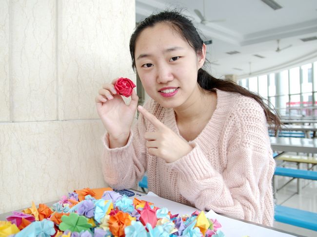 其实折纸后期逐步与自然科学结合在一起,折纸成为建筑、机械专业学习的教具,还发展为现代几何学的一个分支。工科大学生对折纸的学习自然而然成为了一种专业的习得。社会主义核心价值观学习、宣扬的一个有效载体是精神文化产品,在大学生消费精神文化产品的过程中,可以自觉达成情感认知、参与体验的价值观生成,对核心价值观的养成具有重要的意义。以朋辈中生发的精神文化产品则对青年学生来说更具有传播、感染和说服力。所以,从2014年的核心价值观剪纸、2015年的叶脉书签等个体产品从而孵化折纸纸花等精神文化产品逐渐汇集成产品集群,让大学生在积极成为核心价值观的代言人、行动者。院党委副书记吴荷平说。