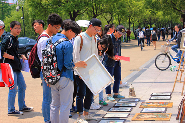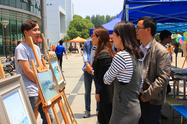 经过前期的广泛宣传和动员,艺术学院为此次义卖提供了50多件形式多样、风格迥异的学生原创艺术作品,包括学生亲手制作的陶艺作品、油画、国画、装饰画以及手工饰品,每一件作品都凝聚了同学们的辛勤汗水和暖暖爱心。义卖现场十分活跃,过往师生纷纷在义卖摊位上停留驻足,买上一件心仪作品,献上一片爱心,物在手与手之间传递,爱在心与心之间交流。