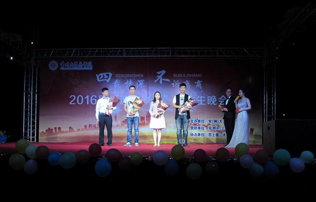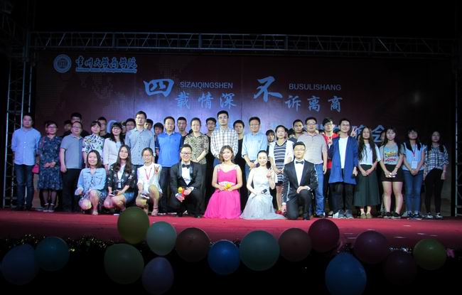 四载筑梦,依依惜别,近日,商学院“四载情深,不诉离商”2016届毕业生晚会在水月广场温馨上演。商学院党委书记江涛涛,副书记陈曙钧,院长助理姜国刚,各学院团委书记,商学院各教研室老师、全体辅导员与毕业生共同观看了晚会。