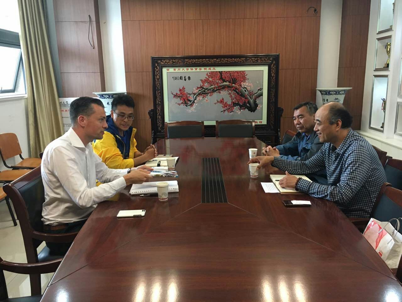 10月11日上午,院党总支书记李荣、副院长张笋在体育馆152会议室会见Arend Hardorff院长,并就双方合作交流召开会议。会上,双方均表达了进一步开展合作交流的意向,并就合作形式与内容进行了探讨,明确了加强合作交流的形式与内容,为双方进一步合作打下了坚实的基础。