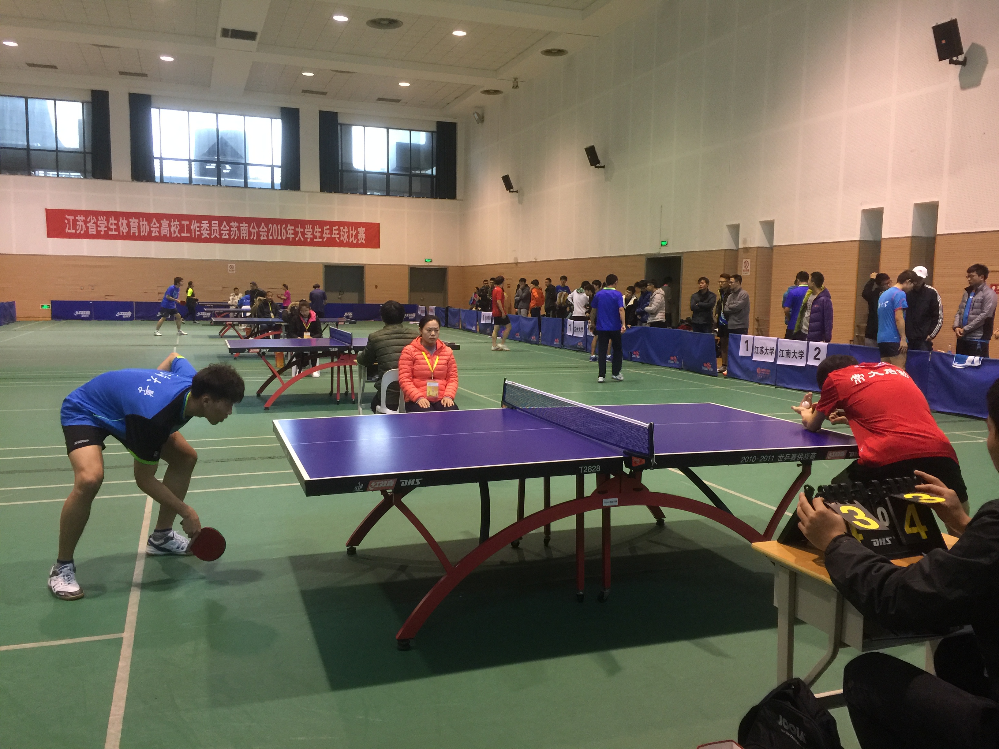 11月25日-27日,由我校承办的江苏省学生体育协会高校工作委员会苏南分会2016年大学生乒乓球比赛在我校武进校区体育馆举行。比赛设甲组(本科院校组)男、女团体赛和乙组(高职院校组)男、女团体赛,共有14所会员高校、150余名运动员报名参赛,其中本科院校组男、女队各9支,高职院校组男队5支、女队3支。我校男、女代表队参加甲组比赛,均夺得第二名的好成绩,方耀、李剑寒被大会评为体育道德风尚奖运动员。