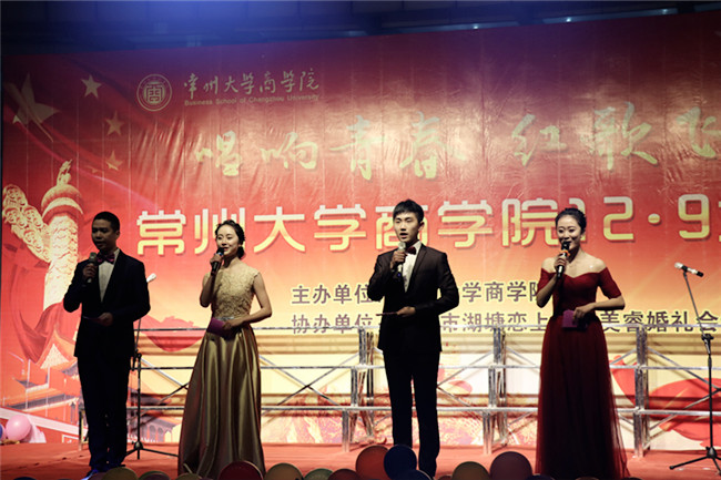 为纪念“一二▪九”爱国运动,培养大学生爱国主义精神和集体主义精神,商学院于12月6日在常州大学白云校区南区广场举办了以“唱响青春,红歌飞扬”为主题的合唱比赛。商学院党委书记江涛涛、党委副书记陈曙钧、副院长姜国刚,2016级教师班主任和全体辅导员现场观看了演出,2016级全体新生参加了比赛。