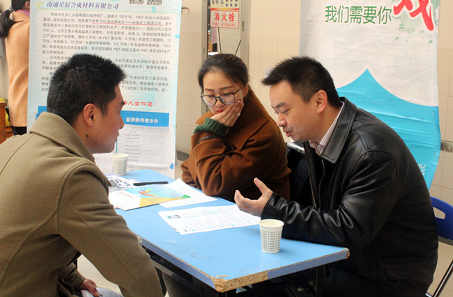 近日,校就业指导中心联合常州市石化行业协会、武进化工业商会、常州食品协会与石油化工学院食品学院、制药与生命科学学院共同在教学辅楼大厅举办了2017届毕业生招聘会(化工、食品、制药类专场)。化工行业协会秘书长朱庆坤、武进化工业商会陆书洪秘书长和王建军主任、校学生处处长闫海波、副处长蒋伟中,石化学院食品学院党委书记王车礼、院长助理宣慧,各专业负责人、班主任及制药学院领导、毕业班辅导员等也来到现场,积极向企业推荐应届毕业生。