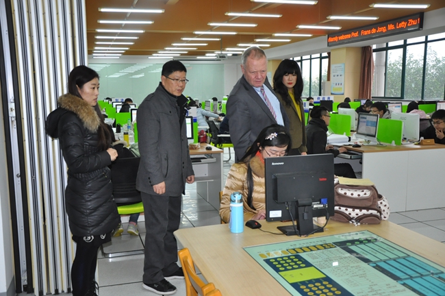 张宏如院长和Frans de Jong教授分别介绍了各自学院的发展历史、办学方向以及教学科研成果,双方在学生培养和科学研究等方面达成初步合作意向。Frans de Jong教授一行参观了该院创新创业实验室和物流实验室,观摩了一节《国际物流》实验课程,对创新创业方面的成效表示肯定。Frans de Jong教授还为物流管理专业的师生作了一场题为《供应链管理发展趋势》的讲座,并与师生进行了互动。(通讯员 陈珊)