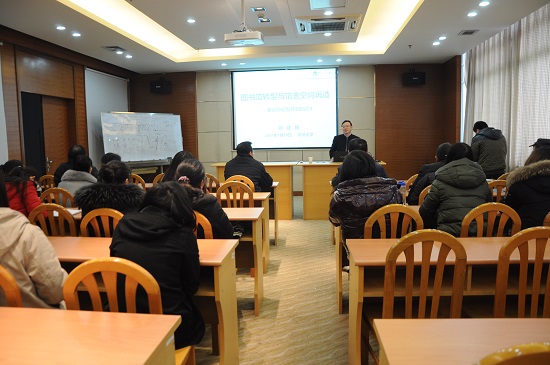 近日,应图书馆邀请,东南大学图书馆馆长顾建新教授在图书馆703室为图书馆业务骨干作了题为“图书馆转型与馆舍空间再造”的讲座。讲座由馆长薛荣主持。