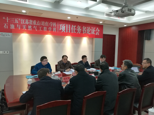 为了主动响应服务国家重大战略和江苏省经济社会发展需求,推动江苏省 “十三五”重点学科培育与建设任务。2017年3月12日上午,受我院邀请,姜汉桥教授(中国石油大学(北京)973首席专家)、马贵阳教授(辽宁石油化工大学石油工程学院院长)、梁永图教授(中国石油大学(北京)学工处处长兼研究生工作部部长)、陈德春教授(中国石油大学(华东)石工学院副院长)组成的专家组来我院进行 “十三五”江苏省重点(培育)学科——石油与天然气工程项目任务书论证会。