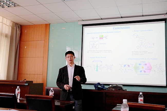 王朝谚介绍了其课题组在过去十年间,利用氮杂环卡宾和碳化二卡宾分别与过渡金属配位实现了对C-H键和C-O键的导向定位活化,为现代有机合成的蓬勃发展提供了新思路。报告结束后,王朝谚还介绍了台湾当地的人文风光和文化美食,并希望积极加强两校的学术交流与合作。(通讯员 曹婧妤)