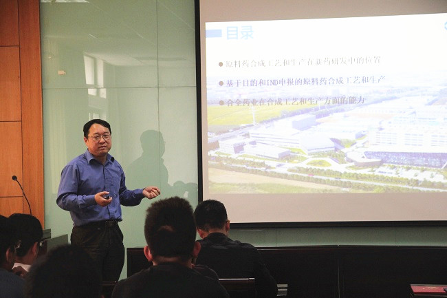 汪有初以一种减肥药的合成工艺和工业化生产为例,从原料药合成工艺和生产在新药研发中的位置、基于目的、用于IND申报的原料药的合成工艺和生产以及合全药业在合成工艺和生产能力三个方面进行了详细阐述。最后,汪有初就同学们提出的问题进行了解答。
