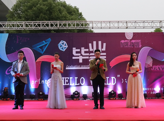 时光荏苒,又是一年毕业季。6月1日晚,信息数理学院“毕业季——Hello World”2017届毕业生晚会在水月广场成功举办。学院党委书记徐明华、院长朱正伟、副院长孙霓刚、院长助理常愉、王峰,学工办全体辅导员老师和2017届毕业生一同观看了晚会演出。