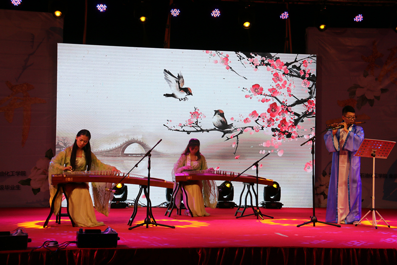 石油化工学院食品学院党委书记吴荷平、副院长马江权、罗士平、宣慧、薛冰以及专业负责人、辅导员出席晚会现场,和学生一起回顾四年点滴。
