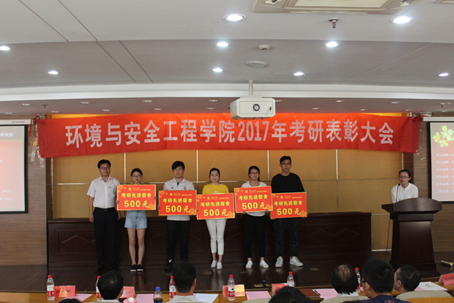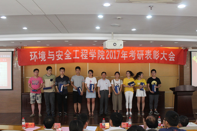 会上,冯胜宣读了《关于表彰环境与安全工程学院2017届考研先进个人和先进班集体的决定》。薛荣在致辞中对考研取得优异成绩的同学给予了充分的肯定与祝贺,对所有辛勤付出的各专业教师表示由衷的感谢,并就今后学院在学生考研等方面工作提出了殷切希望和要求。优秀考研学生代表杭思羽作考研经验交流,同时表达了对母校、学院及各位老师的感谢。