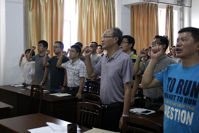 会议在庄严的国歌声中拉开了帷幕,院党委书记何岩峰带领全体师生党员重温了入党誓词,为全体党员开展了以《习近平谈工作作风:老黄牛的品格千里马的气势》、《莫把制度当“稻草人”摆设》为主要内容的党课学习教育活动,何岩峰强调党员既要有老黄牛的品格又要有千里马的气势,既要做个有胆识的战略家又要做个脚踏实地的实干家;他还强调“老好人”做不了“好干部”,要严格杜绝不讲原则讲人情,不讲党性讲关系等不良现象,对待制度就要立说立行、严格执行。
