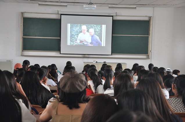 会上,师生集体观看了纪录片《百岁学人——周有光》,影片从成长、求学、婚姻、治学等方面详细生动地展示了周有光老先生的一生,让同学们了解这位老先生身上的勤奋与刻苦、严谨与细致、责任与担当。