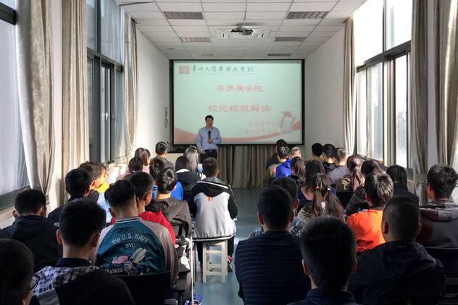 为帮助华罗庚学院学生正确理解学校相关规章制度,树立遵纪守纪观念,近日,华罗庚学院校纪校规解读讲座在华院多功能厅举行,此次讲座由校学生处处长袁志华主讲,54位华院2017级新生共同聆听了讲座,讲座由院党总支副书记安宁主持。