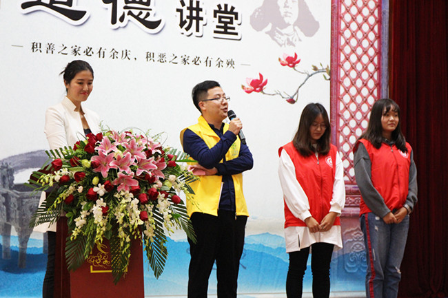 本期道德讲堂以“志愿的心 温暖传递”为主题,常州大学周本卫老师和其他三位道德文明传播志愿者上台领读了“团结有爱、助人自助、无私奉献、共同进步”的志愿者精神内容。通过回顾、深入解读志愿者精神,希望能有更多的人成为志愿者中的一员,将温暖与爱传遍人间。繁星公益基金创办人、最美常州人刘亚娟女士向常州大学石油化工学院食品学院的志愿者们授予“常州繁星志愿者”旗帜。(通讯员 曹婧妤)