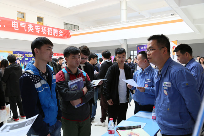 为切实做好2018届毕业生就业工作,搭建毕业生与用人单位方便高效的供需平台,11月11日,由常州大学就业创业指导中心和机械工程学院 城市轨道交通学院联合举办的常州大学2018届毕业生机械、电气类专场招聘会在科教城校区教学辅楼举办。我校2018届毕业生参加此次招聘会,学工处副处长蒋伟中,机械工程学院党委书记柳铭、党委副书记葛涛,院关工委老同志,专业负责人、年级辅导员和教师班主任到现场与招聘人员、毕业生进行交流。