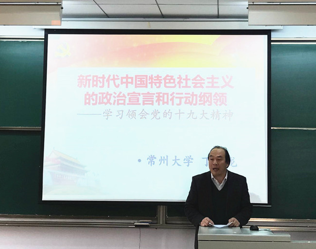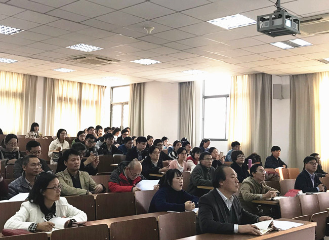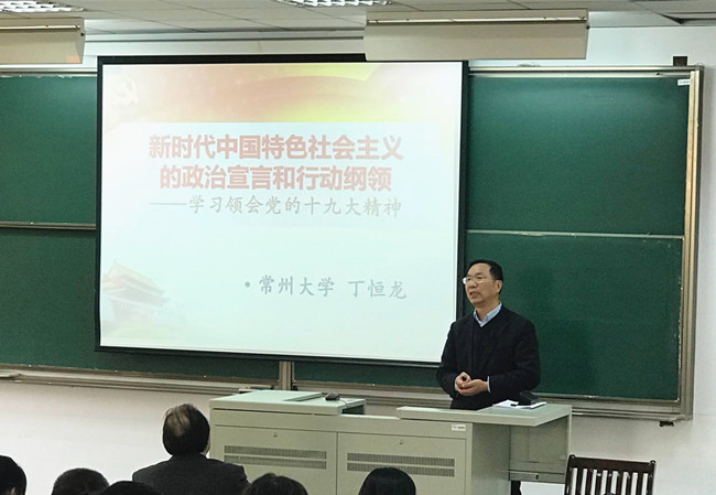 11月15日下午,环境学院邀请我校丁恒龙教授作学习党的十九大精神专题报告。学院全体教工党员和学生党员参加了报告会。会议由院党委书记薛荣主持。