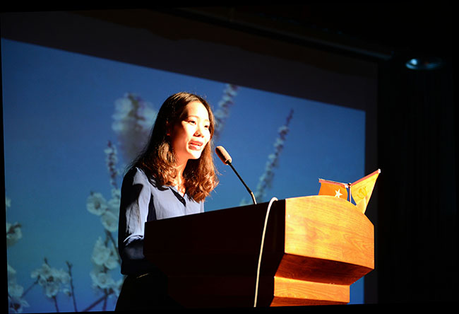 此次讲堂活动共分为“唱歌曲、学模范、诵经典、发善心和送吉祥”五个环节。在“学模范”环节,由宣讲人宣讲先进事迹《燃蜡炬之光 展园丁大爱——走近常州大学商学院张普老师》。张普老师现任常州大学商学院副教授,硕士生导师,兼任金融班班主任。自2011年与常州大学商学院结缘以来,她爱岗敬业,乐于奉献,在平凡的岗位做出了不平凡的成绩:金融专业从最初只有一个专业教师到现在的13人教师团队,从20个学生到400个学生,从本科教学到硕士生教育,倾注了张普老师所有的心血;在科研上,她曾获江苏省学术专业方面多个奖项,发表多篇高端的专业性论文及专著,并在股票波动性价值,金融服务体系建设等方面颇有建树。宣讲之后,常州大学四位同学进行了诗朗诵《因为您,我们更加优秀——致亲爱的老师》。在“发善心”环节,与会人员纷纷发表自己的道德感悟,使在座所有人都深受鼓舞。