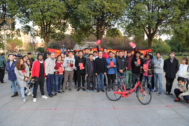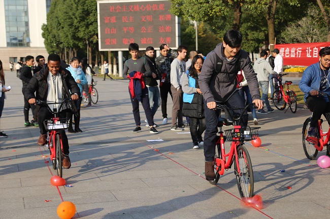 讲座结束后,100余名留学生参加了学校组织的“动感骑行 舞动青春”趣味自行车比赛。比赛分为骑行台、压气球和慢骑三个项目。留学生在比赛过程中不仅收获了快乐和友谊,还增强了安全出行意识和低碳环保意识,对于我校构建文明、和谐、安全校园有着积极的意义。(通讯员 胡思奇)