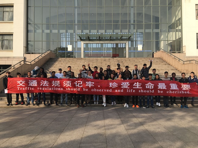 为进一步加强留学生的交通安全意识,近日,国际处和后勤管理处联合邀请常州市武进交巡警大队韦晗骏警官为留学生举办交通安全知识讲座,并组织趣味自行车比赛。