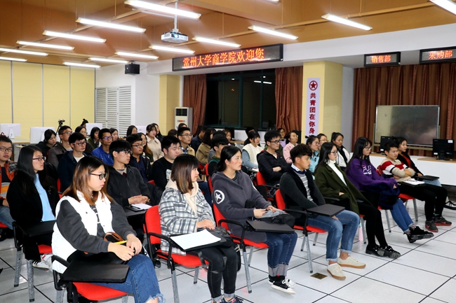 11月23日晚,常州市大学生创新创业学院第六期“创客训练营”在线课程直播见面课在商学院207企业仿真实验室顺利举行。此次见面课由复旦大学熊浩老师主讲,上海师范大学,常州大学、华东政法大学和运城学院参与此次直播互动。第六期“创客训练营”全体学员参加了此次直播见面课。