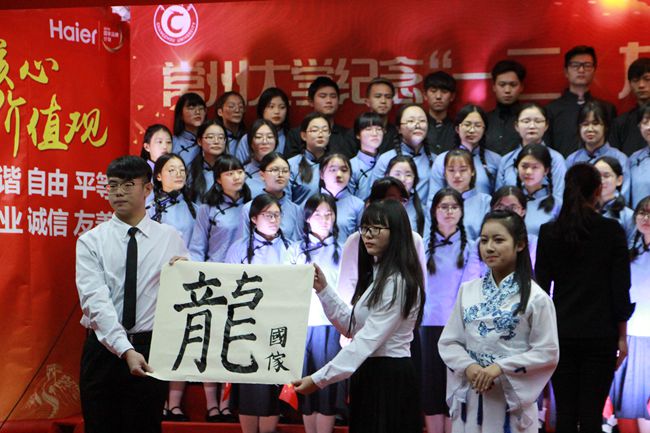 比赛现场群情激昂,异彩纷呈,高潮迭起,歌声或舒缓轻柔、以情动人,或高昂有力、振奋人心。《国家》、《爱我中华》、《我的祖国》、《精忠报国》、《红旗飘飘》、《我的中国心》......一首首振奋人心的爱国歌曲,同学们整齐划一的动作、铿锵有力的歌唱,表达了深切爱国之情怀,彰显出当代青年之担当。合唱过程中,九支参赛队伍继承创新,融入手语表演、舞蹈、朗诵或书法等创新形式,以丰富多彩的表演形式表达了青年学子的爱国之情,用他们嘹亮的歌声祝福祖国更加繁荣昌盛。艺术学院、周有光语言文化学院、石油工程学院和机械学院的同学们也献上了精彩节目。