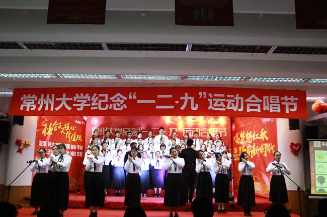 为纪念“一二·九”爱国学生运动82周年,弘扬爱国主义精神,由常州大学团委主办、商学院承办的纪念“一二·九”运动合唱节活动于12月8日在白云校区图书馆报告厅成功举行。本次合唱节活动主题为“不忘初心跟党走,砥砺前行共筑梦”。校团委副书记张精华,艺术学院副院长熊祖鹏教授,商学院党委书记江涛涛、副院长姜国刚、党委副书记龙涌澜,校艺术团刘赫,班主任代表及各学院分团委书记应邀出席。商学院2017级全体学生及部分学院学生代表参加本次活动。
