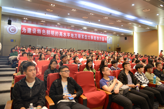 袁能向大家详细介绍了我校的建校史,讲述了常州大学三易校址,四更其名,终成如今之常大。他向同学们深入浅出地分析了我校追求卓越的办学历程,介绍了我校的核心特色与办学现状,使同学们更加深刻地了解常州大学。