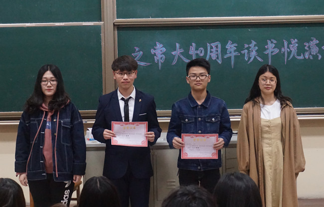 选手演讲内容紧随时事,联系实际。经过了一个半小时的激烈角逐,比赛评出了一等奖两名、二等奖三名、三等奖六名,并为获奖选手颁发了奖状。(通讯员 方姗姗)