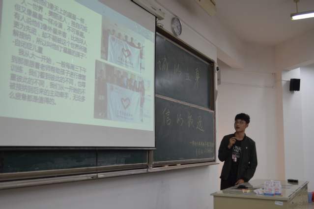 会议之初,材料学院志愿者团团长蔡易辰介绍了《材料学院志愿学时考核证书》的考核方法,并号召在座的受助同学积极参加志愿服务活动,怀揣一颗感恩诚信之心,将爱心传递下去。随后刘洁阐述了诚信感恩的重要性,并通过诚信感恩故事、诚信感恩古诗词接力等形式,进一步引导大家树立诚信感恩意识。国家励志奖学金的学生代表上台演讲,向同学们讲述了自己的国励之路、感恩之路,向大家传播诚信感恩的正能量。最后,全体学生一同观看了感恩诚信微电影《爱的瓶子》。