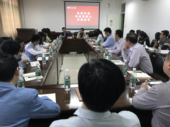 李忠玉首先就学院概况、师资队伍、教学资源、人才培养等方面进行了简要介绍。王凯全向范维澄介绍了学院安全工程专业情况,并请范维澄结合当前形势对专业及学科发展问诊把脉。范维澄就最近国家应急管理部的成立,解读了安全科学与工程学科的发展,并结合其研究为大家解读了国家公共安全研究的前沿信息,对我校安全工程专业发展方向、平台建设等方面提出了宝贵的建议。范维澄指出,科研要有“顶天立地”意识,要以国家需求为导向,做国家需要的事情,解决中国实际问题,鼓励大家不要拘泥于自己的专业,视界要宽、学会合作。互动环节中,范维澄就在座师生的提问进行了耐心解答。(通讯员 方姗姗)