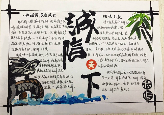 手抄报大赛作为本次系列活动的特色创新活动,经过初评、微信投票决出最终名次,优秀作品通过微信推送和展板展览,采用图文并茂的形式来解读资助诚信,在学生中产生了积极的反响。同学们纷纷表示要践行诚信,要从身边小事做起。