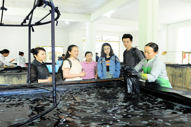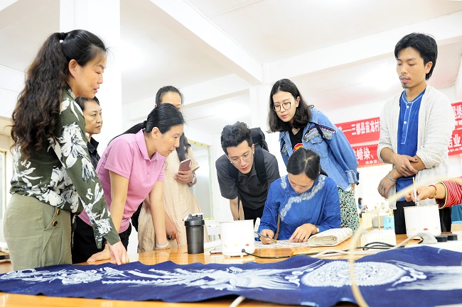 为学习贯彻习近平新时代中国特色社会主义思想和党的十九大精神,深入落实习近平总书记在北京大学师生座谈会上的重要讲话以及习近平总书记给第三届中国“互联网+”大学生创新创业大赛“青年红色筑梦之旅”大学生重要回信精神,5月31号至6月2号,参加第四届中国“互联网+”大学生创新创业大赛青年红色筑梦之旅活动的常州大学染冉团队——常州市艺染生物有限公司成员分别走访考察了广西富川冬梅瑶绣有限公司、贵州亘蓝母图民族布艺蜡染开发有限公司、贵州丹寨蓝之蓝实业有限公司与当地政府、扶贫办开展扶贫调研、对接工作,中国纺织建设规划院副院长马志辉、华罗庚学院执行院长徐淑玲、常州大学染冉团队指导老师纪俊玲教授、王一舒教授和常州大学染冉团队部分学生成员参加此次活动。