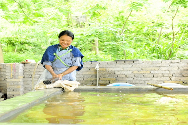 5月31号,常州大学染冉团队走访广西富川冬梅瑶绣有限公司,瑶绣非遗传承人李冬梅表示,公司目前还停留在典型的传统手工作坊,有典型的传统手工作坊存在的问题——提取的染料有效成分含量低,品质不稳定,染液易受植物原料质量,水质,工匠技艺等因素的影响,产品染色后着色不均匀,牢度达不到认证标准等。常州大学染冉团队可为该公司提供技术指导,并应用本公司工业化生产的染料对瑶族的纺线染色,将当地文化特色的瑶绣技艺附加于当代纺织品中,传承非物质文化遗产。